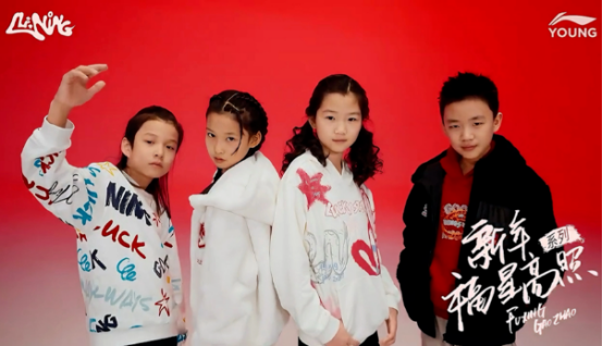 镜头里,武勃良化身灵动少年,身着以中国红为主调、卡通涂鸦彰显青春活力的新衣,与小伙伴们在一起嬉笑打闹,转动手中的篮球,愉快的玩耍,每一个鬼脸、每一个跳跃,都让李宁新年系列的运动活力与时尚感破屏而出。