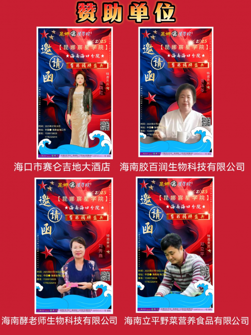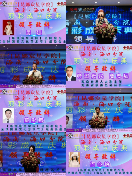 【昆娜宸星学院】(海口分院)剪彩成立仪式暨文艺展演盛典,由【昆娜宸星学院】(海口分院)主办,由【昆娜宸星学院】总院、《世界名人艺术家联合会》联袂指导,由海南省慈善总会、海南省爱心社工志愿者协会、《海南自贸港银龄艺联艺术总团》、《海南佳人有约·笙籁艺术团》、《海南民族舞蹈艺术团》、《海南百姓舞台艺术团》、《海口文坛海韵艺术团》、《海口大榕树艺术团》、《海口夕阳红艺术团》、《海口市八方艺术团》、海口市美兰区白沙门环保教育站等相关单位协办;由海南酵老师生物科技有限公司、海南胶百润生物科技有限公司、海南赛仑吉地大酒店、海南立平野菜营养食品有限公司等企业提供赞助支持,并获知名访谈栏目——《昆娜名人访谈》、【昆娜宸星学院】官方媒体《昆娜宸星学院报》及全球300家主流媒体宣传助力。