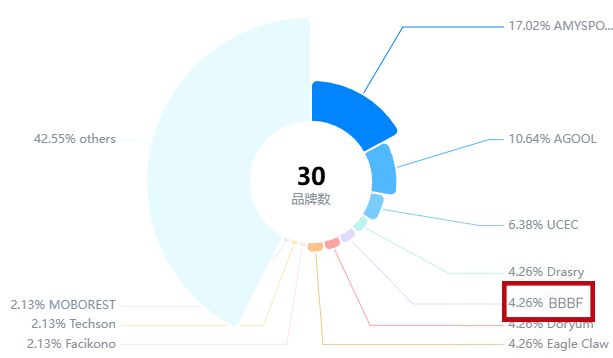 在美国BBBF渔具在亚马逊官方数据排进前十,市场占有率4.26%;