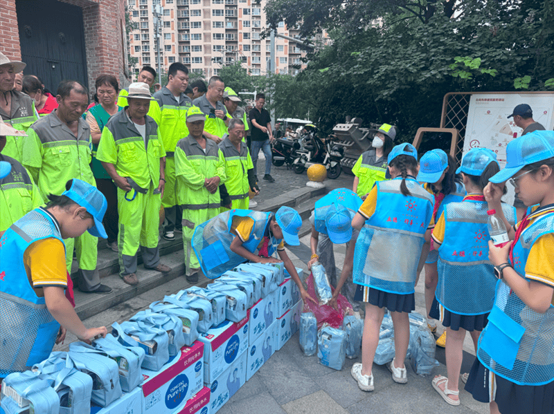 而且,此次活动的筹备时间十分紧凑,仅有不到1周的时间,从物资采购到路线规划,从对接街道到协调志愿者,团队里的每一个人都在“连轴转”。但在各方的共同努力下,我们还是完美地完成了任务,为更多的环卫工人带去了夏日的慰藉。但看到现场环卫工人接过物资时的笑容,所有疲惫都化作了满足。