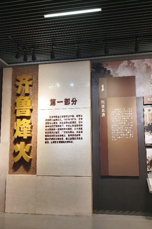 步入展馆,大型雕塑与背景墙瞬间把我们拉回烽火岁月。雕塑中,战士们冲锋陷阵、群众支援前线,生动展现齐鲁大地抗日的热血画面。“齐鲁烽火” 展区,详细讲述日本侵华野心、七七事变后山东党组织的抗争。从发动武装起义到建抗日民主政权,文字与史料让我们深知山东抗日根据地建立的不易。