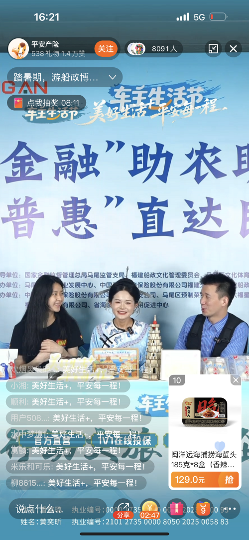 近年来,福建文旅经济持续升温。金融同行助文旅,政企同心促消费。此次直播活动也是平安产险福建分公司紧跟区域发展战略,以金融之力护航地方建设的又一实践。当天历时4小时的直播,总曝光量105万,累计互动超37.1万人次,线上直播总观看量9.3万,线下活动累计参与人数超3千人,助农协销超200单,销售金额近2万元,并通过福袋抽奖发放防晒用品、运动手表、充电宝等实用礼品,实现文化传播与金融科普的双重价值。