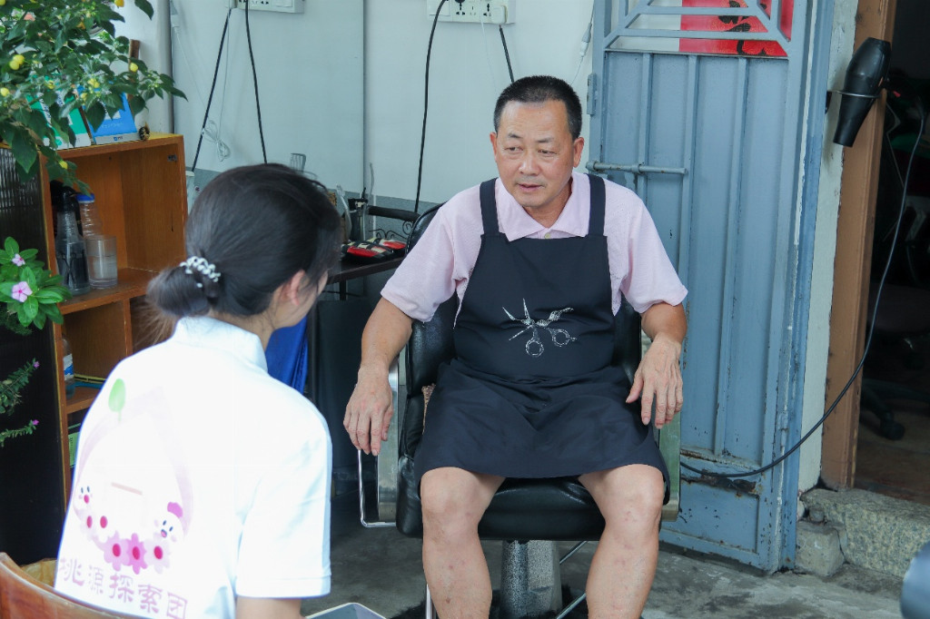 图为调研组成员与理发师邓师傅的访谈场景。罗庭锋供图