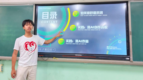 为利用人工智能“协助消除获取学习机会和资源的障碍,补齐教育短板,实现教育均衡发展”,夏心在施甸二中启动“AI向未来”体验营。支教队员借高清图解、沉浸短片与鲜活案例,系统阐释人工智能概念、产业场景与操作逻辑,并示范如何运用提示词精准驱动大模型完成创意写作、图像生成等,随后组织现场竞速赛,让学生在真实调用中感受AI生产力,激发数字时代的新质学习力。