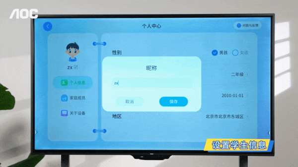 进入平台后,用户可以设置专属的个人账号,填写完整的信息后,就能够根据孩子的实际情况配置不同的学习资源。