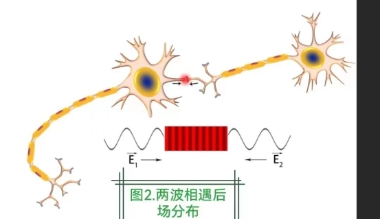 在这过程中,海马区神经元与其他脑区神经元在连接处,即突触处两波相遇了。根据物理学原理,相遇后的波能量分布就形成了干涉场 (如图二所示)。