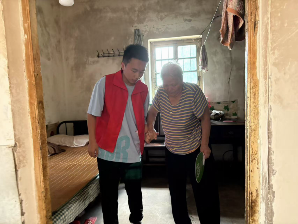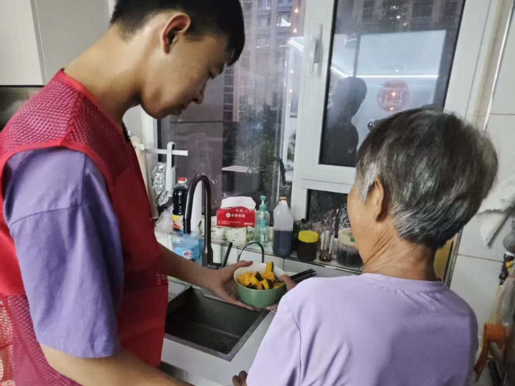 活动中,志愿者身着红马甲,来到老人居所。在厨房,志愿者贴心为老人准备水果,陪老人唠家常,倾听生活点滴;在居室,搀扶老人缓慢行走,细致询问身体状况与需求 。老旧的房间里,因志愿者的到来,满是温馨。