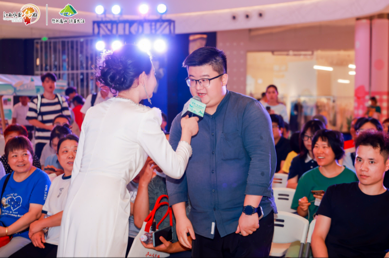 当晚,“清凉一夏向九江”路演活动在龙湖南京河西天街火热开启。庐山、庐山西海、浔阳区、濂溪区、瑞昌市、彭泽县、都昌县等代表轮番登台,通过文旅推介、非遗表演、互动问答等形式展现地域特色。现场观众不仅领略了各有特色的文旅魅力,还参与答题赢取九江景区门票及文创礼品,气氛热烈。