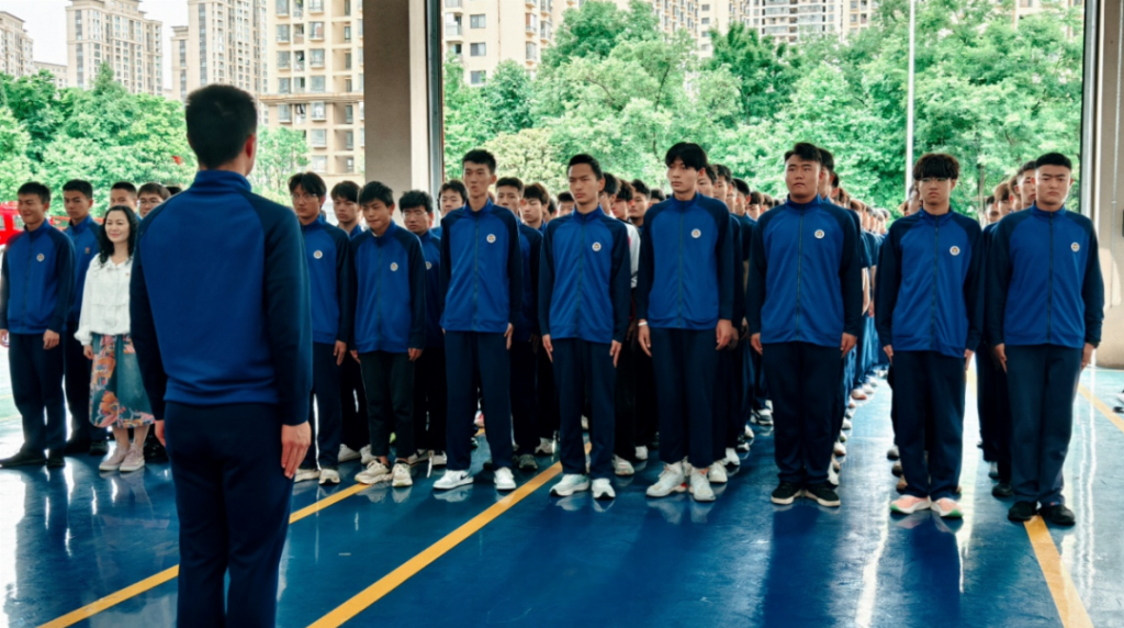 本次活动汇聚了各班选拔出的优秀学生代表,围绕消防实战需求设置八大比武项目,全方位检验学子的综合素养。在一人两盘水带操中,选手们迅速甩开水带,连接分水器与水枪,动作流畅利落,尽显扎实基本功;5人百米负重接力赛上,选手手提水带接力奔跑,将速度与默契展现得淋漓尽致;4人百米障碍接力则考验着选手们的体能极限与顽强毅力;原地着灭火防护服项目里,参赛选手熟练地按规程迅速穿戴整套装备,展现出专业素养;消防标志识别环节充分体现了选手们对消防理论知识的扎实积累;而5人杠铃上举接力、5人俯卧撑接力等项目,更让大家看到了学子们日复一日训练打磨出的力量与耐力。