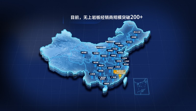 从创立之初,短短两年无上岩板便已完成北京、上海、深圳、厦门、成都、广州、武汉、西安、福州等30座核心城市的战略布局,以全国200+门店的硬实力冲破进口岩板垄断趋势,成为民族岩板渠道增长覆盖率第一品牌。这不仅仅是规模的扩张,更是民族智造的有力宣言。