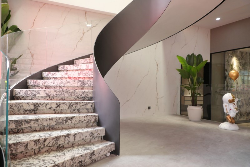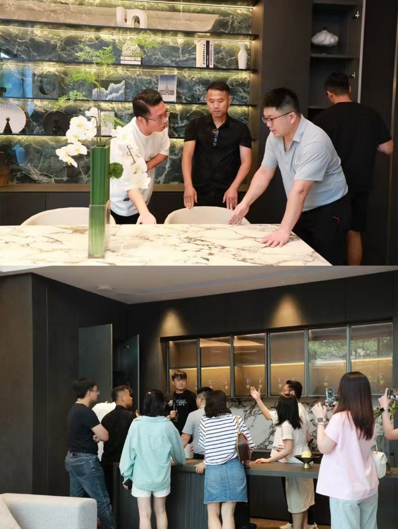 丰富的全岩应用展示空间与工艺、产品、花色的巧妙陈列运用,无不彰显无上岩板的匠心独运与卓越品质,吸引了无数设计师朋友的目光。