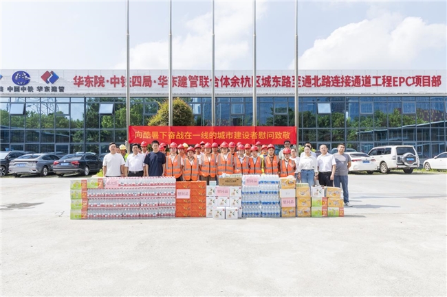 8月5日,中铁四局余杭城东路项目联合杭州市余杭区住建局法规科及建筑行业协会开展“送清凉、送法治进工地”慰问活动。
