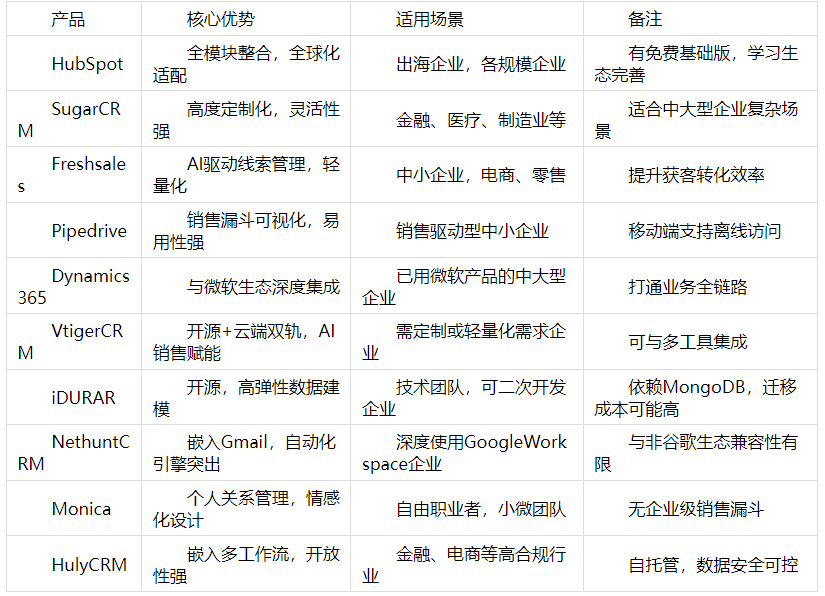 出海企业或全球化布局团队:优先选择HubSpot,其多语言管理、全链路整合与合规支持,能一站式解决跨境运营痛点。
