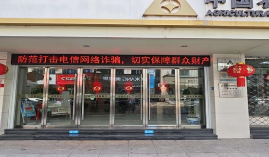 线下宣传:立足网点阵地,延伸基层触角。一是网点阵地“沉浸式”宣传。农发行金华市分行各机构以营业场所为核心宣传阵地,打造“进门可见、随处可学”的反诈氛围:利用LED显示屏24小时滚动播放“反诈是门必修课,筑牢防线守好责”“防范打击电信网络诈骗,切实保障群众财产安全”等宣传语,以及国家反诈中心发布的警示教育视频,其中武义县支行、义乌市支行等网点的电子屏宣传覆盖所有到店客户,形成高频次视觉冲击。在营业大厅设置“全民反诈集中宣传角”,摆放反诈易拉宝(如武义县支行投放3处)、宣传手册(内容涵盖诈骗案例、防范技巧等),在柜员窗口张贴“警惕出租出借账户违法犯罪”等提示贴,方便群众随时取阅学习。 一线员工利用客户办理业务间隙,“一对一”讲解近期高发的虚假投资理财、冒充客服、贷款诈骗等案例,如浦江县支行重点提醒客户保护账户安全,对异常交易及时劝阻,兰溪市支行则通过现场拆解非法集资手法,帮助群众加深防范记忆。二是基层延伸“面对面”宣讲。农发行金华市分行各机构组织员工走出网点,深入企业、社区、乡村及员工家庭,开展“接地气”的宣传活动:兰溪市支行辐射周边社区和客户公司,通过现场宣讲经典案例,覆盖超30人次;义乌市支行走进社区、企业,结合真实案例剖析冒充公检法、虚假投资等诈骗套路,传授“核实身份、拒绝轻信、果断止损”的应对技巧,并引导群众下载国家反诈APP,提升实战防骗能力。全辖累计发放宣传手册超百册,通过“唠家常”式讲解,让老年人、务工人员等易受骗群体也能清晰理解反诈知识,不少群众表示“听完就知道怎么防骗了”。