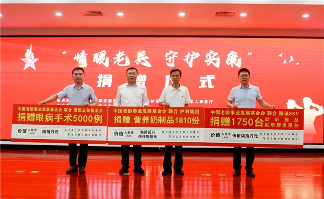 为纪念中国人民抗日战争暨世界反法西斯战争胜利80周年,8月5日上午,“情暖老兵-守护安康”捐赠仪式暨革命老兵走访慰问活动在山东潍坊举行。本次活动在退役军人事务部思想政治和权益维护司的指导下,由中国老龄事业发展基金会联合山东省退役军人事务厅、潍坊市退役军人事务局共同开展,伊利集团、腾讯SSV、爱眼公益基金会等“可持续社会价值生态圈”成员单位共同支持,以实际行动致敬革命老兵,传递社会各界对英雄群体的深切关怀。