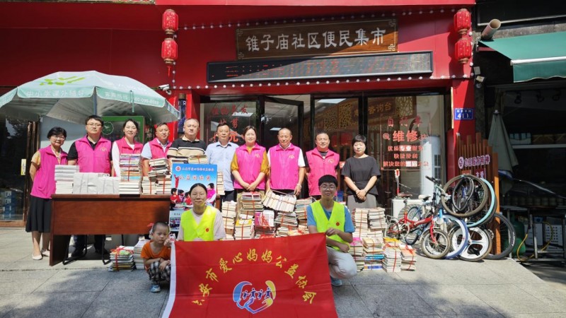 8 月 6 日上午,一场充满温情与关爱的捐赠活动在锥子庙社区便民集市暖心上演。安徽六安裕安区委史志室和六安市爱心妈妈公益协会带着对社区儿童的深切关怀,向锥子庙社区便民集市捐赠了2000余册儿童读物,为孩子们送上了一份意义非凡的“精神食粮”。