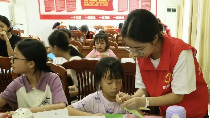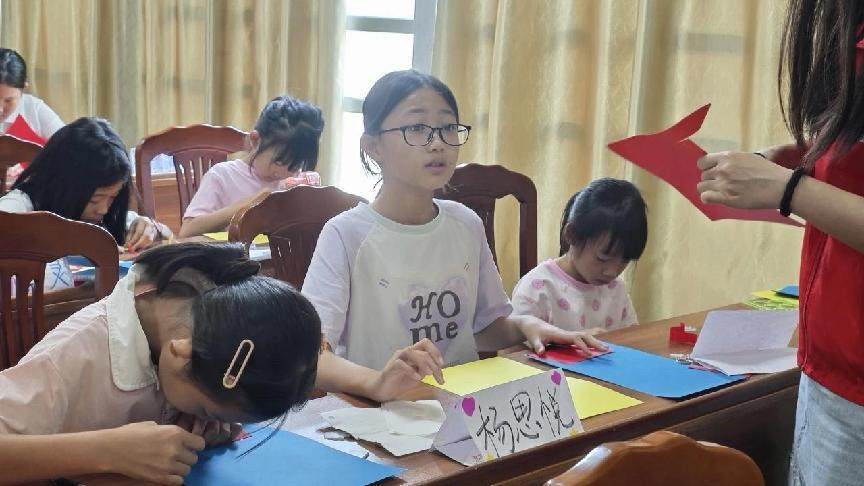 陈佳媚老师教双三角折法等折纸,孩子们折出青蛙、军帽、纸蝴蝶,锻炼动手与创新力,满是成就感,定格实践瞬间。