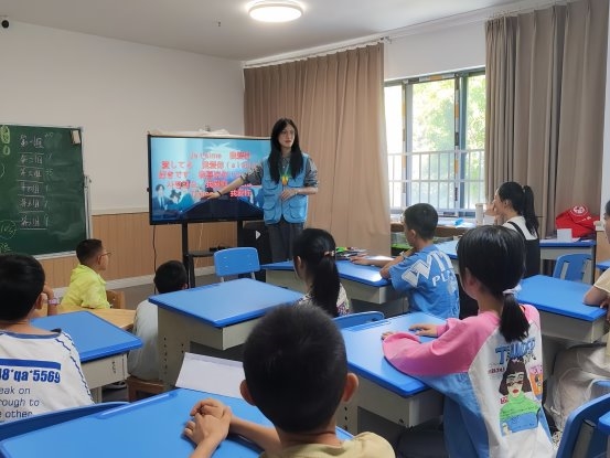 多语言教学成为最受欢迎的课程。负责人王皓发挥外语专业优势,将英、法、韩等语言基础教学融入游戏。"从“Hello”到“Bonjour”,从“Nice to meet you”到“만나서 반가워!现在孩子们见面都会用不同语言打招呼。"王皓说。还有不少学生在心愿卡上写下"想学法语去旅游""想学韩语看演唱会"等梦想。在当天的语言课程结束时,他又布置了一份特殊的家庭作业——让孩子们用课堂上学习的外语向家人表达"我爱你"。当晚的家长微信群便陆续收到家长们的暖心反馈——一位妈妈在群里分享道:"第一次听女儿用法语说'Je t'aime',一开始不知道什么意思,孩子告诉我什么意思后眼眶都湿了。"
