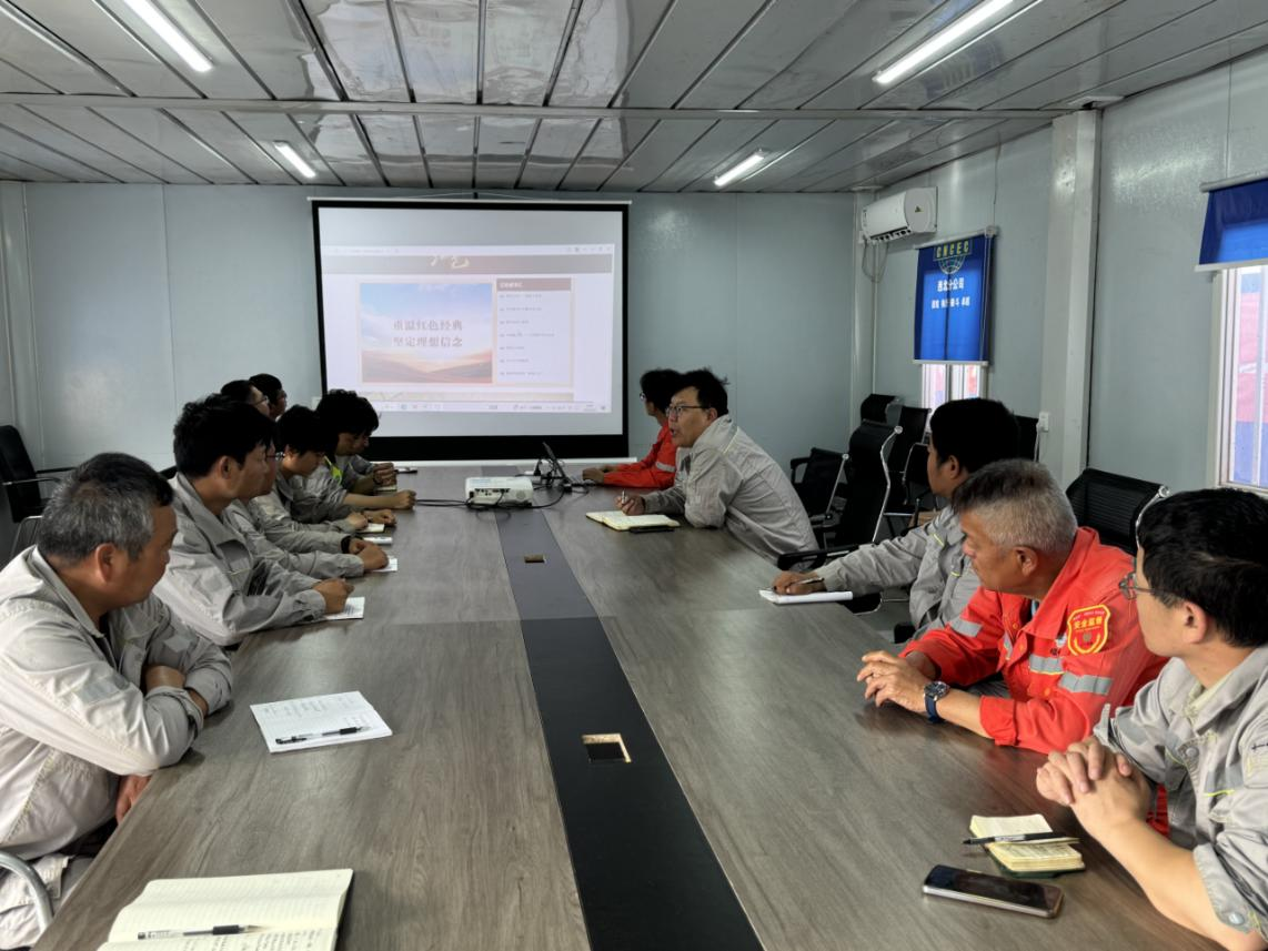 炽热骄阳下,中国化学工程第十一建设有限公司西北分公司中煤鄂能化液态阳光项目部开展了一场以“传承红色基因 践行初心使命”为主题的“一线党员带团员”共建活动,将革命历史的厚重与青春热血的激扬交织成动人画卷。