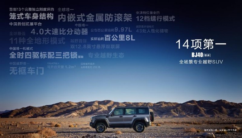北京越野坚守专业底线,确保产品的专业性与安全性。BJ40燃油14项同级第一或唯一,推高越野专业标杆上限。中国唯一机械式全时四驱系统(柴油版),能在毫秒级内完成扭矩分配。4.0大速比分动器带来超强攀爬能力。全球首创12档蠕行模式,即使是越野新手也能精准控制车速。全球唯一内嵌式金属防滚架,配合首创13个完整独立刚度环结构,顶部可承受10吨重压。2024年中国汽车用户满意度调查,BJ40系列以92分获硬派越野SUV并列第一。