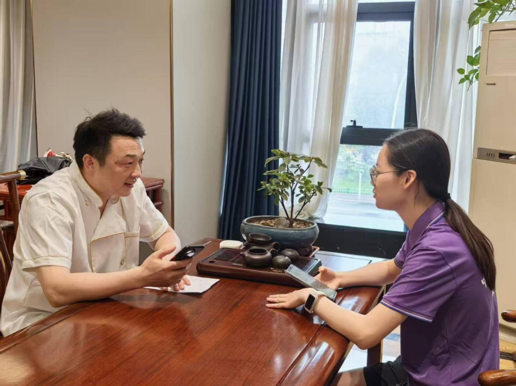 图为团队负责人采访淮扬菜厨师对淮扬菜传承与发展的意见。崔沁摄