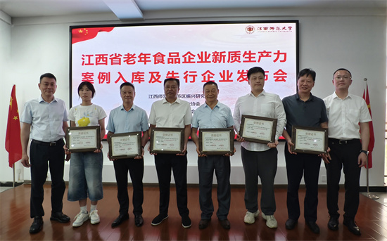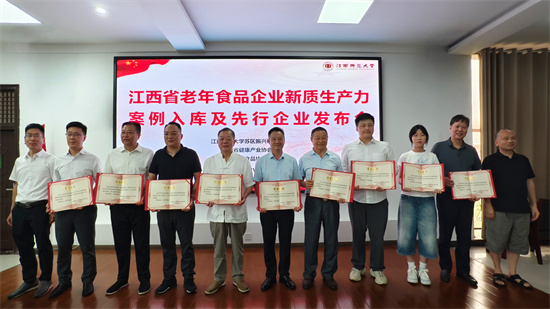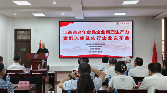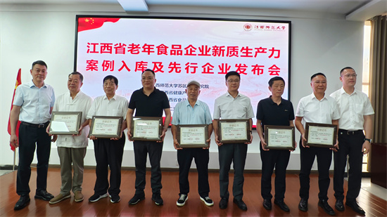 8月7日上午,由江西师范大学苏区振兴研究院联合江西省健康产业协会、江西省食品协会主办的“江西省老年食品企业新质生产力案例入库先行企业发布会”在江西师范大学苏区振兴研究院报告厅举行。本次发布会以“健康中国+银发经济”为主题,聚焦老年食品产业高质量发展,来自政府部门、行业协会、高校智库及13家省内头部老年食品企业的代表齐聚一堂,共同见证全国首个省级老年食品创新案例库的诞生,并联合授予13家企业“老年食品制造先行企业”称号。