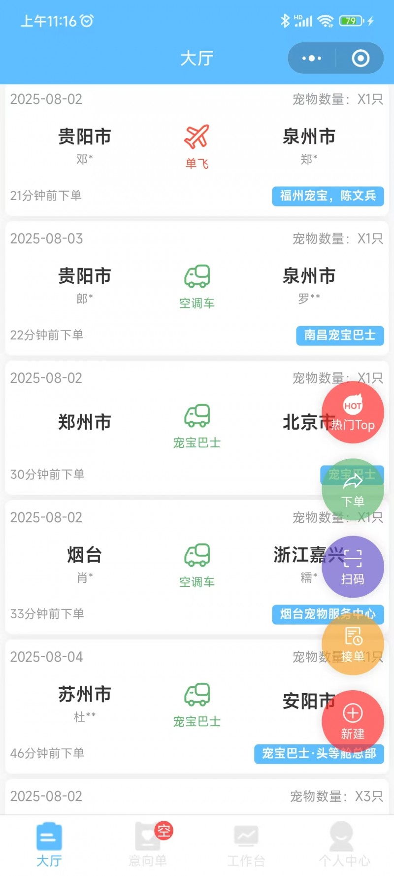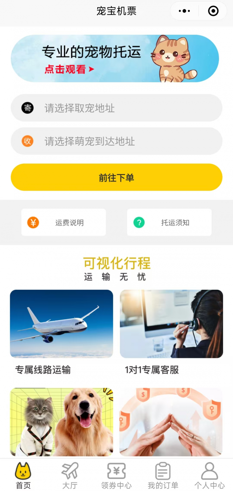 为了破解这一系列问题,王谦率先在行业提出建立信息化服务系统,让客户能够在平台上下单,类似于早期的“携程”。基于长期从事信息化和铁路调运行业经验,2019年王谦找到一家外包公司,斥资上百万开发了国内第一个宠物出行小程序——“宠宝头等舱”,支持客户在线自助下单,实现全国31个省市区无死角交付,首次将宠物出行带入了透明、便捷的新阶段。