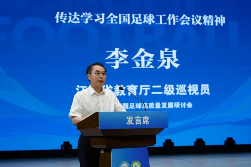 李金泉在会上传达了全国足球工作会议精神。他强调,把发展校园足球作为落实立德树人根本任务的重要抓手。各地、各校要切实增强责任感和使命感,在完善政策体系、强化条件保障、创新培养模式等方面下功夫,推动江苏校园足球实现更高质量发展。