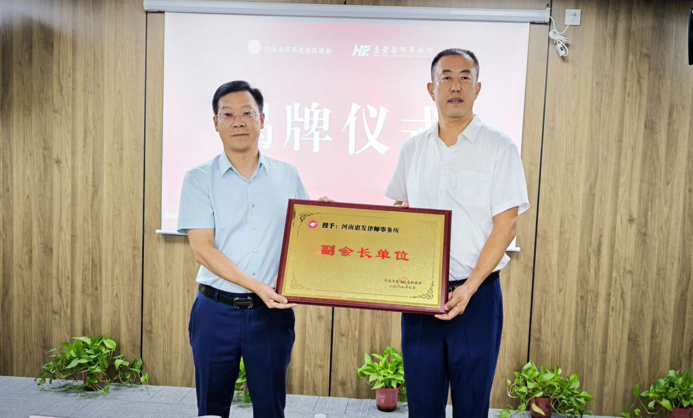 2025年8月8日,河南省信用建设促进会在河南惠发律师事务所隆重举行授牌仪式,正式授予该所“副会长单位”“信用共建单位”及“法律调解中心”三项重要资质与职能。这不仅是对惠发律师事务所专业能力与社会责任的充分肯定,更是河南省深化社会信用体系建设与法治实践深度融合、探索“信用+法治”协同治理新路径的战略性举措,标志着“信用河南”建设迈入体系化、法治化的新阶段。