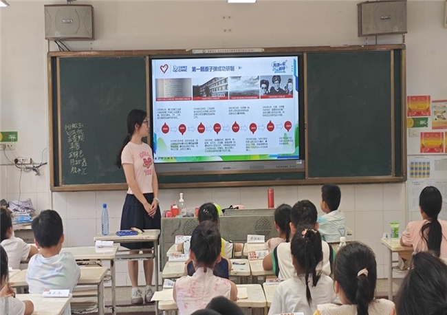 在湖北省鄂州市泽林镇楼下小学的课堂上,一次特别的相遇正在发生。2025年7月末,华中科技大学同济医学院予鹿支教队与该校“传承两弹一星精神,投身强国强核建设”志愿宣讲团携手,为这里的孩子们带来了名为“核”你在一起的系列课程。这不仅仅是一次知识的传递,更是一场跨越时空的精神对话,一次在少年心田精心播种信仰与担当的实践。掌声与惊叹的背后,是厚重历史的回响与时代使命的悄然承接。
