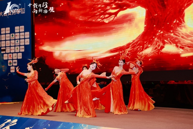 盛典以震撼人心的开场舞《凤鸣朝阳》拉开序幕。舞者身披金翎羽衣,以行云流水之势演绎凤凰展翅的壮美画卷。赤金绸缎如朝霞破晓,领舞者的九天回旋恰似丹凤高歌,将“有凤来仪”的祥瑞气象推向高潮。现场业界领袖纷纷起身致意,璀璨灯海映照每一张写满震撼的面庞——这不仅是一场视觉盛宴,更是商业文明与艺术灵魂的深度共鸣。