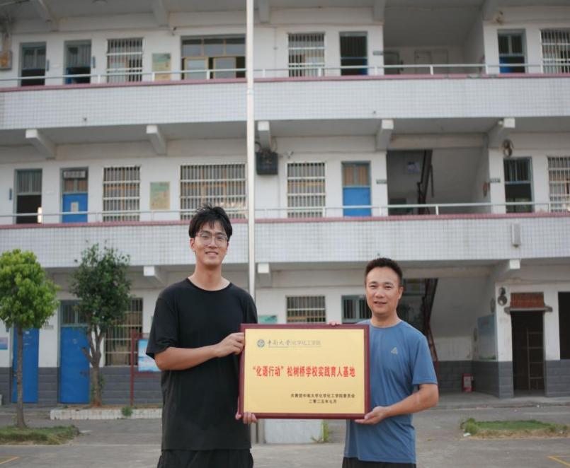 7月19日,中南大学化学化工学院辅导员文璋前往湖南省益阳市衡龙桥镇松树桥学校,参加“‘化语行动’实践育人基地”揭牌仪式,松树桥学校校长杨富贵出席。文璋老师简要介绍了当前学院的办学情况和实践育人特色。随后,双方就学校建设情况和师资力量等方面进行了交流。在支教实践团成员的共同见证下,本次揭牌仪式顺利完成。