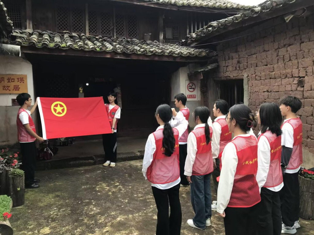 图为团队成员在胡如瑛故居门口前进行入团宣誓。李佳临 供图