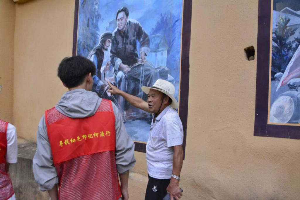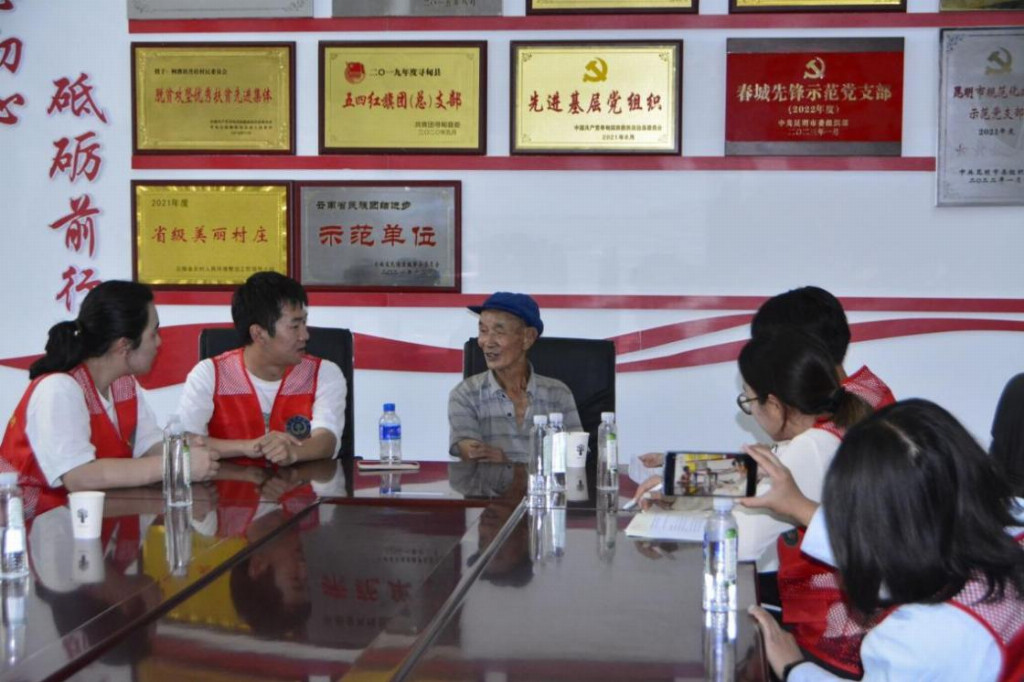 图为团队成员向老党员请教长征故事和乡村巨变。李爱萍 供图
