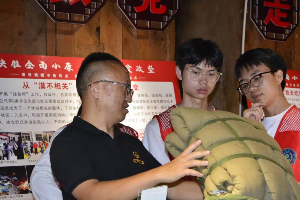 图为讲解员讲解红军行军时的背包。尹涛 供图
