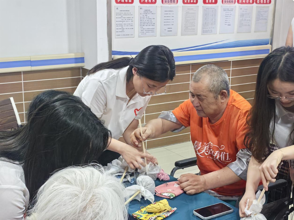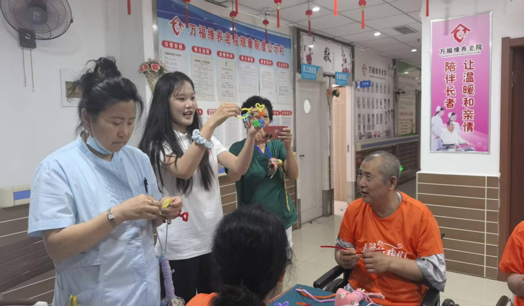 7月8日,实践团于万福缘养老院与老人们展开温情互动。实践团成员结合老年人常见诈骗案例,用通俗易懂的语言开展反诈宣讲,教老人识别诈骗话术、防范诈骗陷阱;随后带领老人进行艾草锤和扭扭棒手工制作活动,仔细示范制作步骤,并耐心引导老人们完成制作;活动尾声,实践团为老人们送上含生活用品的伴手礼,并进行合影留念。同学们表示,此次活行不仅践行了“尊老、敬老、爱老”传统美德,同时也深化了她们作为青年学生的社会责任感。