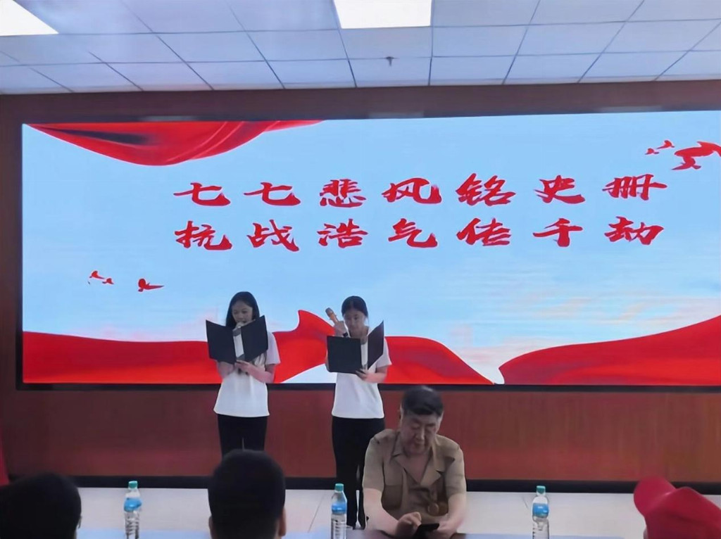7月9日,实践团联合鞍山市大陆街道办事处、曙光社区,在大陆街道党群服务中心开展红色主题活动,邀请广大青少年与社区居民参与其中。活动中,辽宁省道德模范、鞍山市军休副主任何长岭以“七七事变”为切入点讲述历史故事,引发了听众的强烈共鸣;实践团成员以“七七悲风铭史册,抗战浩气传千劫”为主题进行演讲,以青年视角诠释革命精神的时代内涵