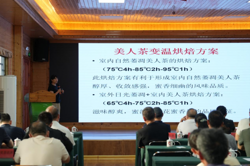 为持续赋能产业,赛事还安排了丰富的交流学习活动。大田乌龙茶科技小院责任专家、福建农林大学金珊教授 为本地茶农、茶企代表带来了一场题为 “美人茶拼配艺术与烘焙技术精进” 的专题技术讲座,内容详实,实操性强。当晚,与会茶人移步 江山美人茶业有限公司专业审评室 ,在两岸专家的带领下,对获奖茶样进行复盘品鉴。大家围绕获奖茶样的优点、工艺关键点、市场偏好等展开热烈而深入的交流讨论,在品茗论道中共同学习,共同进步 。