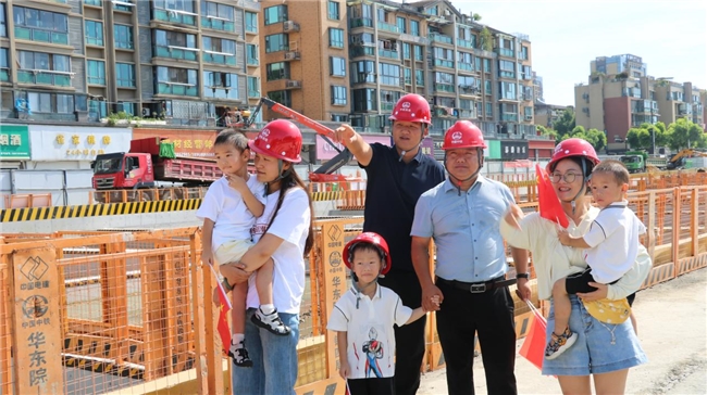 活动包含三个核心环节:安全课堂由项目安质部长周泽龙主讲,通过剖析真实案例和演示消防器材操作,向孩子们传授安全防范措施与逃生技能,提升安全意识;工地参观环节,孩子们在父母陪伴下走进文一西路西延二期施工现场,近距离观察大型机械运作与现场施工实景,切身感受工程建设规模及父母工作的辛劳;最后于双溪景区进行亲子漂流,父母与孩子同舟协作,互助前行,在欢声笑语中深化了情感联结。