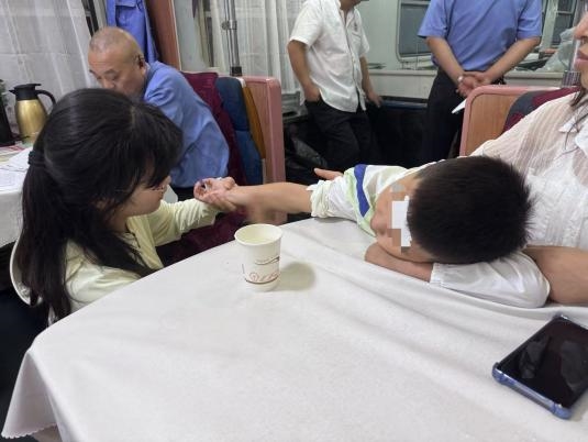 7月19号晚上,由合肥开往北京的T36次列车上,车站广播传来了紧急求助。危急时刻,安徽中医药大学两位学生听到寻医广播后不约而同地赶到现场,他们组成临时急救小组,联系自己的老师“云会诊”,运用中医穴位按摩为孩子缓解疼痛,并在患儿情况稳定后,为提供更舒适的环境,主动抱着孩子小心翼翼穿越7节车厢,将其转移到空间相对宽敞的餐车,持续守护至凌晨1点。这场跨越车厢与时间的“生命接力”,暖心一幕引发乘客纷纷点赞。