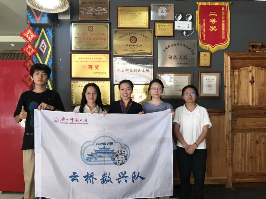 在广西柳州三江侗族自治县的青山绿水间,一场传统与数字的对话正在“月也三江”非遗体验馆生动上演。2025年7月9日,广西师范大学马克思主义学院“云桥数兴”暑期实践队奔赴“月也三江”非遗体验馆,与自治区级非遗传承人吴春月展开深入交流。木楼里,吴春月正专注地用手机录制侗族大歌教学视频,墙上侗族装饰与古朴的侗族乐器相映成趣,勾勒出一幅传统与现代交融的动人画卷。
