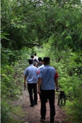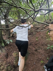 午饭稍作休整后,我们再次出发,这一次是徒步巡林。带上镰刀和打火棒(护林员们的俗称,它可以用来扑灭较小的火源),我们与几位护林员踏上了五公里的山林之路。山林之中荆棘密布、蚊虫肆虐、山路崎岖……仅仅一会儿,我们裸露的手臂上已经全是被蚊子咬的红包。而这,正是巡林员的日常。他们灵活地穿梭在山林之间,不畏辛苦,只为守护森林的安全与宁静。