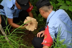 巡林虽然劳累,途中也充满了各种惊喜。在山坡的一处拐角,眼尖的罗站长一下子就看见了一株硕大的鸡枞——比手掌还大一圈,菌盖泛着细细的纹理,仿佛是大自然精心雕琢的艺术品。在一段山路旁,会窜出一只松鼠,在电线上奔走。