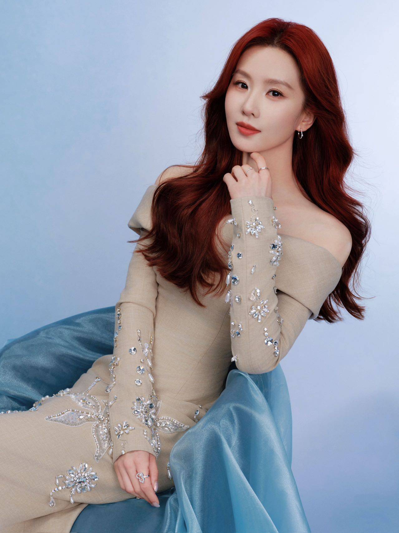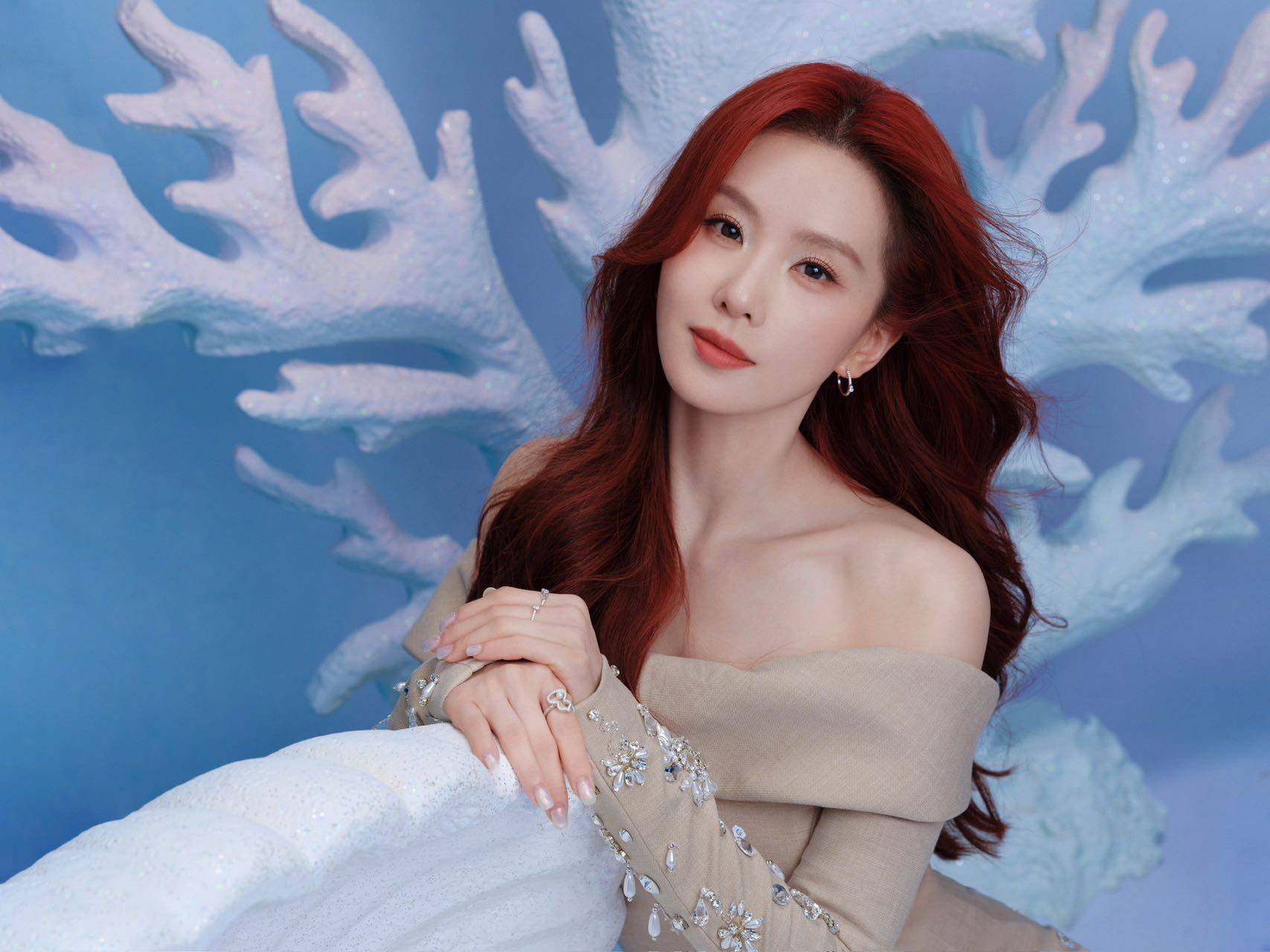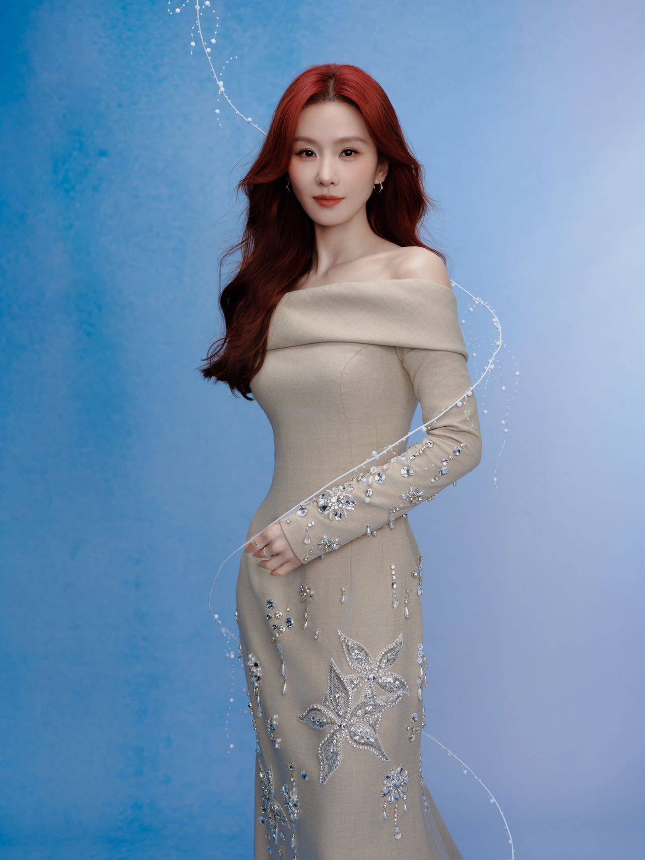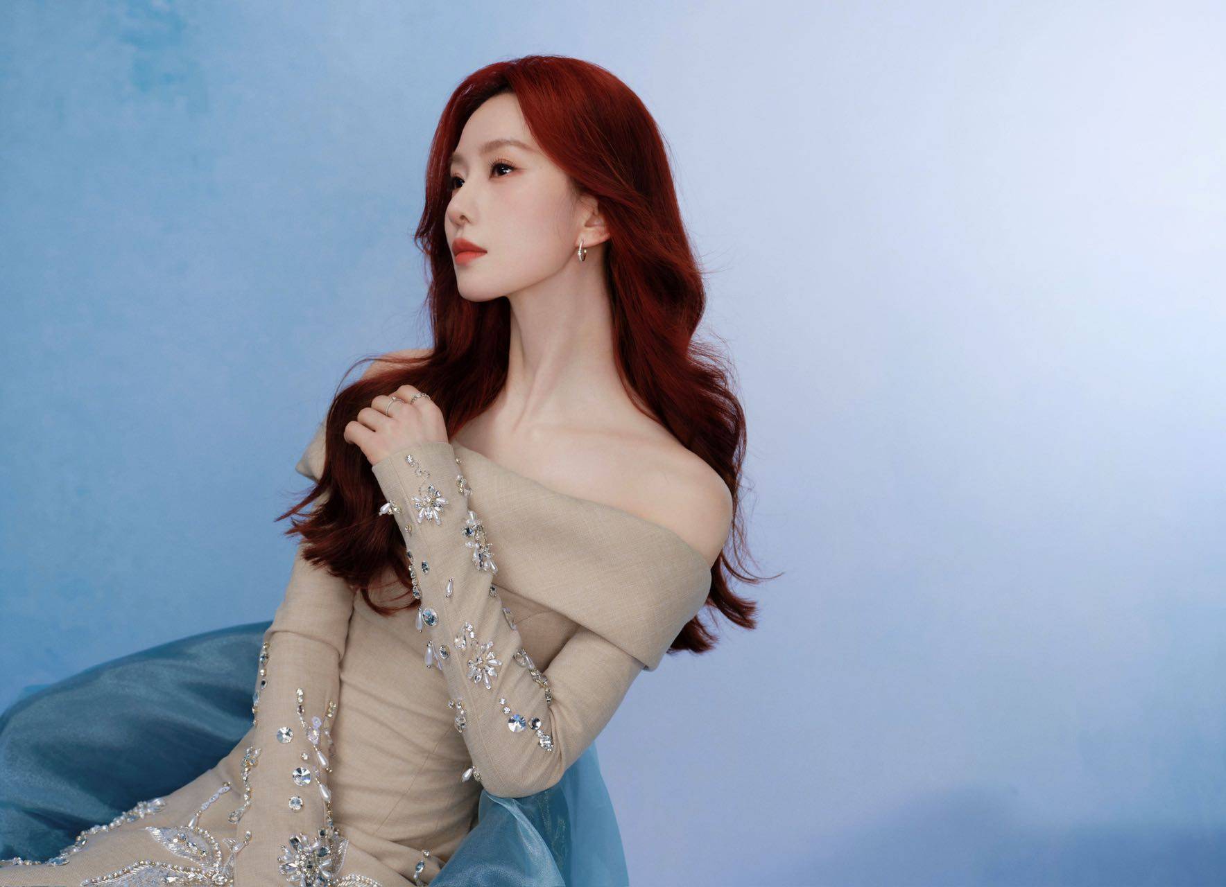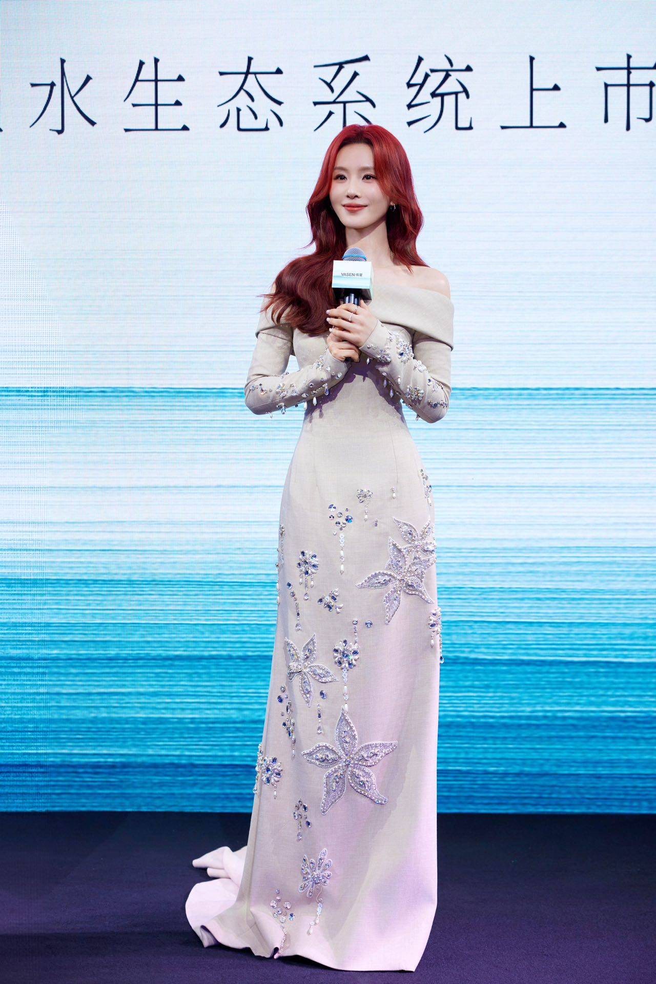 红发长裙,美人鱼般的惊艳亮相