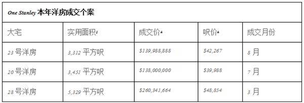 据了解,新买家为内地企业家,钟情项目位处港岛南传统豪宅地段,23号洋房无论大厅和房间均坐拥南海无敌海景*,而且洋房外观更由Robert AM Stern Architects名师设计,有收藏价值,加上ONE STANLEY提供多项高端物业管理服务和会所设施±,故决定购入上址。 客人采用轻松360天先住后付付款办法以逾1.39亿元&连两个车位购入,实用呎价达42,267元&,是次成交价及呎价较上月成交之20号洋房为高及创第二排'BERYL AVENUE'洋房★成交价及实用呎价新高z。