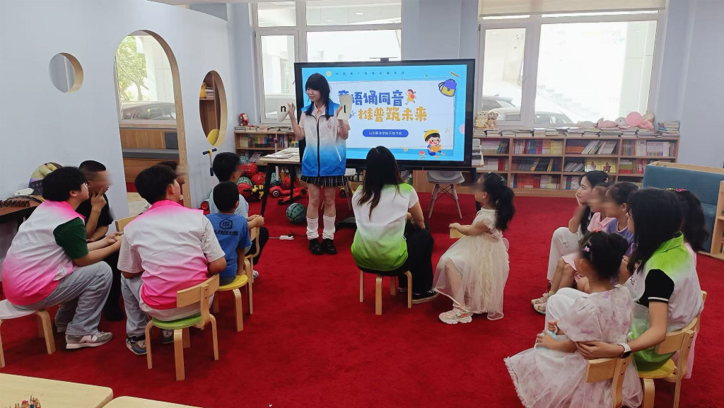 当爱心课堂遇上普通话训练,一场别开生面的语言成长之旅在福利院温馨启航。7月10日,山东职业学院“青春‘语’你同行”社会实践队走进山东省济南市儿童福利院,创新推出“语润童心”普通话提升计划,巧妙融合“理论学堂、手工工坊、情景剧场”三位一体模式。孩子们在理论学堂夯实发音基础,在手工工坊边做边说强化词汇,在情景剧场自信演绎情景主持,全方位体验表达的乐趣,提升沟通的信心,用标准普通话搭建起通往更广阔世界的桥梁。