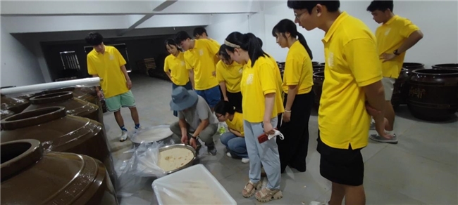 随后,团队走进当地米酒厂,村支书给出了他的答案:“用独龙泉水酿酒,香醇甘甜,广受好评。”他带领队员体验传统酿酒工艺,讲述“一眼泉水润民生” 的故事,从过去靠泉水解渴度日,到后来用泉水酿出好酒,再到如今米酒产业带动村民增收、村集体经济壮大,这汪清泉早已从生存的依托,变成了乡村发展的 “源头活水”。这些亲身经历的见闻与体验,让团队成员真切触摸到乡村振兴的生动脉络 ——它不是抽象的概念,而是藏在每一滴米酒里的匠心,写在村民增收账本上的实在,更是像独龙泉这样的本土资源,在世代奋斗中焕发的新生机。