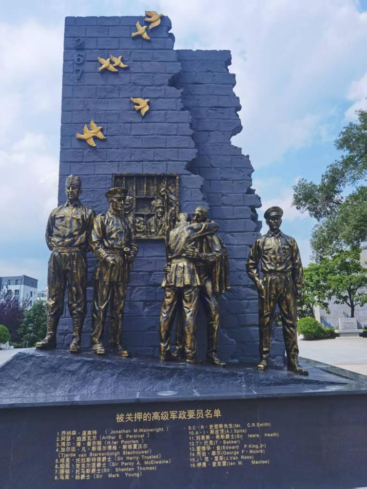 走出营房,广场上的“和平墙”格外醒目。墙上镌刻着34名战俘的姓名与国籍,来自美国、英国、荷兰、澳大利亚……不同的语言,却在同一片天空下经历了相似的苦难。墙前的和平鸽雕塑展翅欲飞,阳光洒在金属羽翼上,泛着温暖的光泽。