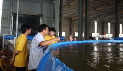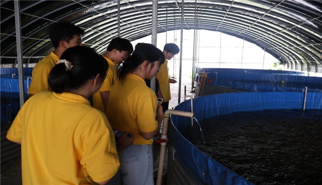 调研中,团队成员认真记录养殖设施细节与技术参数,不时向负责人提问,深入了解设施水产技术应用。团队队长陈宇琳总感慨到,机械化、智能化让陆基圈养桶养殖模式在循环水处理、智能投喂、病害防控等方面取得了显著成效,成功实现了节水、环保、高效的统一,为乡村水产养殖转型升级提供了可行路径。(陈俐妍)
