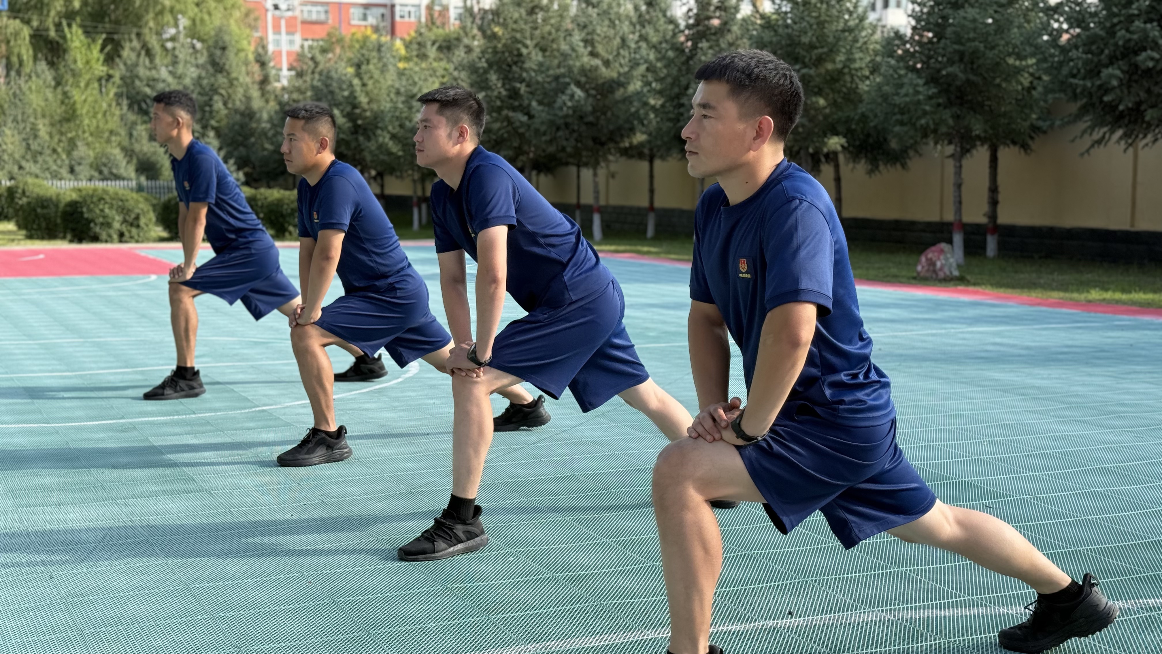 在训练前,小教员依据训练内容科学安排热身,热身运动是各项训练不可或缺的环节,它能有效提升身体温度,克服惰性,促使运动器官进入良好状态,有效预防训练伤病的发生,并为后续训练成效提供有力保障。